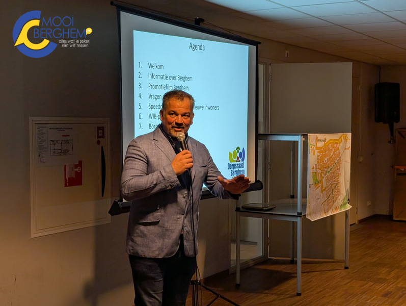 Leo Hoeks en Rene van der Lee van Berge dur ut lint vertelden over de historie van Berghem en over de talkshow ‘t Lof en het nieuwe project 'DNA van Berghem'. Daar kunnen ze de nieuwe inwoners goed voor gebruiken. Ze gaven de nieuwe inwoners een Bergs boek. Zo kunnen de nieuwe inwoners een beetje gaan intregeren.
