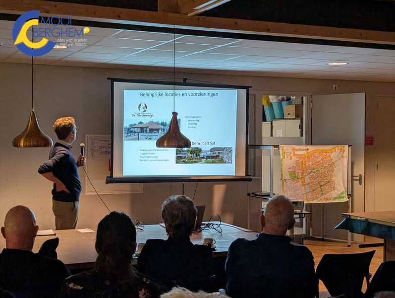 Harmen Snoeijs vertelde over de rol en activiteiten van dorpsraad Berghem en Petra Manders liet weten wat er allemaal te doen is in het bruisende hart van Berghem, dorpshuis De Berchplaets.