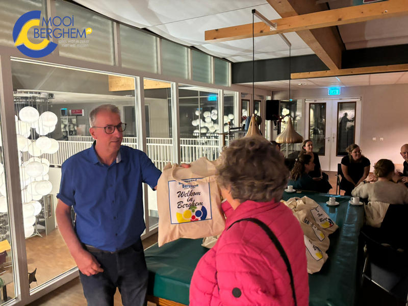 De nieuwe inwoners werden verblijd met het zogeheten WIB-pakket (Welkom In Berghem). Dorpsraad Harold Mazen reikte de waardevolle welkomstpakketen uit met producten en acties van meer dan 35 Bergse winkels, ondernemers en verenigingen ter waarde van enkele honderden euro's.