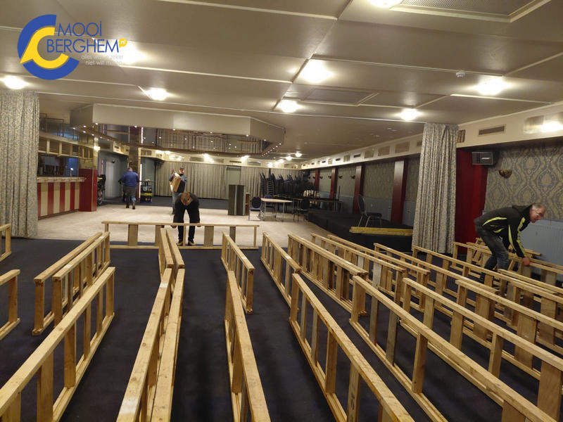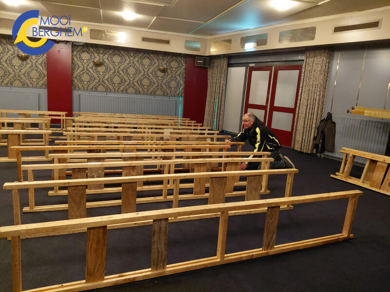 De opbouw van het podium is gisteren gestart bij zalencentrum De Merx. De opbouwploeg onder leiding van Geert van Ravenstein maakt de zaal klaar voor de Prinsonthulling van het Knollenrijk! Geert regelt het allemaal, al weer voor het 11e jaar. Een vrijwilliger in hart en nieren! Zaterdag 22 november zal de stichting Carnaval Berghem, de nieuwe Prins, Adjudant en Knolleginneke onthuld worden! Met een sterk ingekort