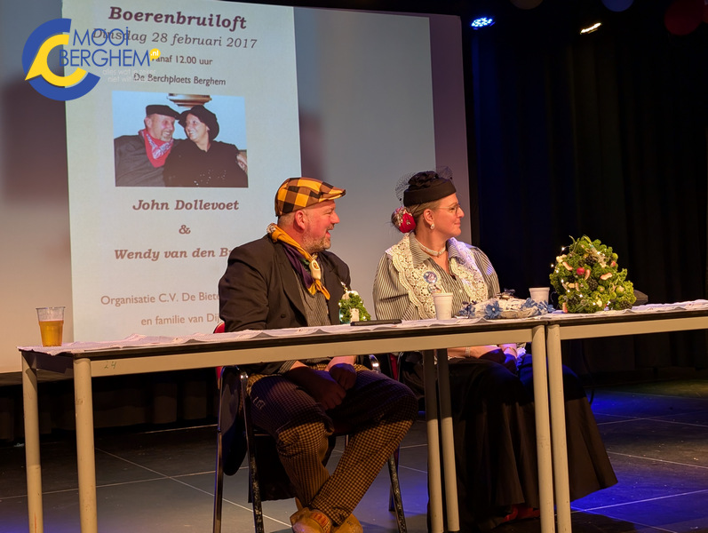 Het was een gezellige drukte tijdens de laatste boerenbruiloft met het bruidspaar Theo van Ravenstein en Angelique van de Coolwijk. Onder grote belangstelling gaven zij elkaar een weloverwogen en uiteraard een tikkeltje ondeugend jawoord. Carnavalsvereniging De Bietenbouwers organiseerde de boerenbruiloft voor de allerlaatste keer in dorpshuis De Berchplaets. Hoewel er her en der nog ludieke “bezwaren” werden ingediend, kon dat de feestvreugde niet drukken en ging de ceremonie gewoon door.