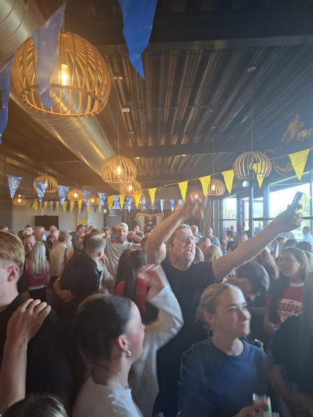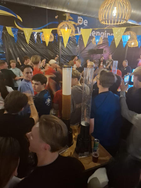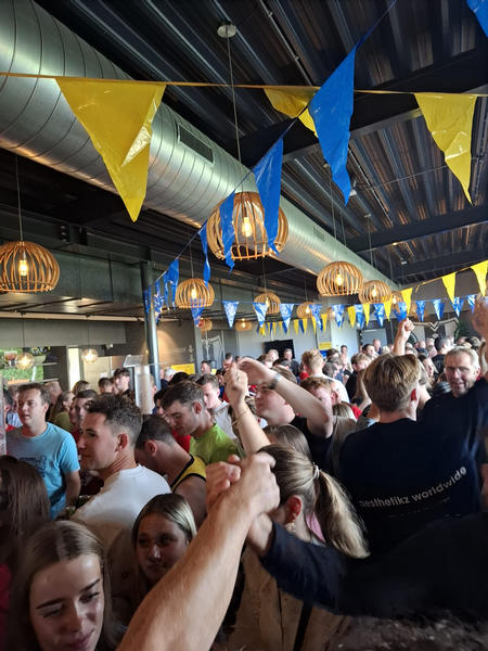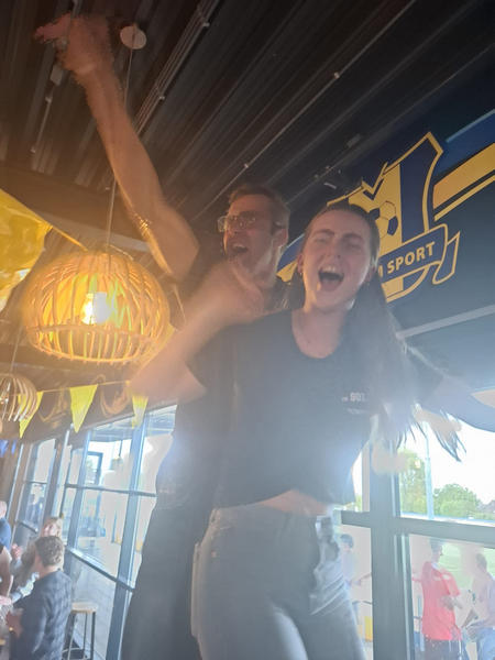 een feestje van in bomvolle kantine bij Berghem Sport. De bierglazen, pullen en kannetjes werden gevuld en de dames dansten op de tafels! Kortom, het was reuze gezellig in de kantine van Berghem Sport!