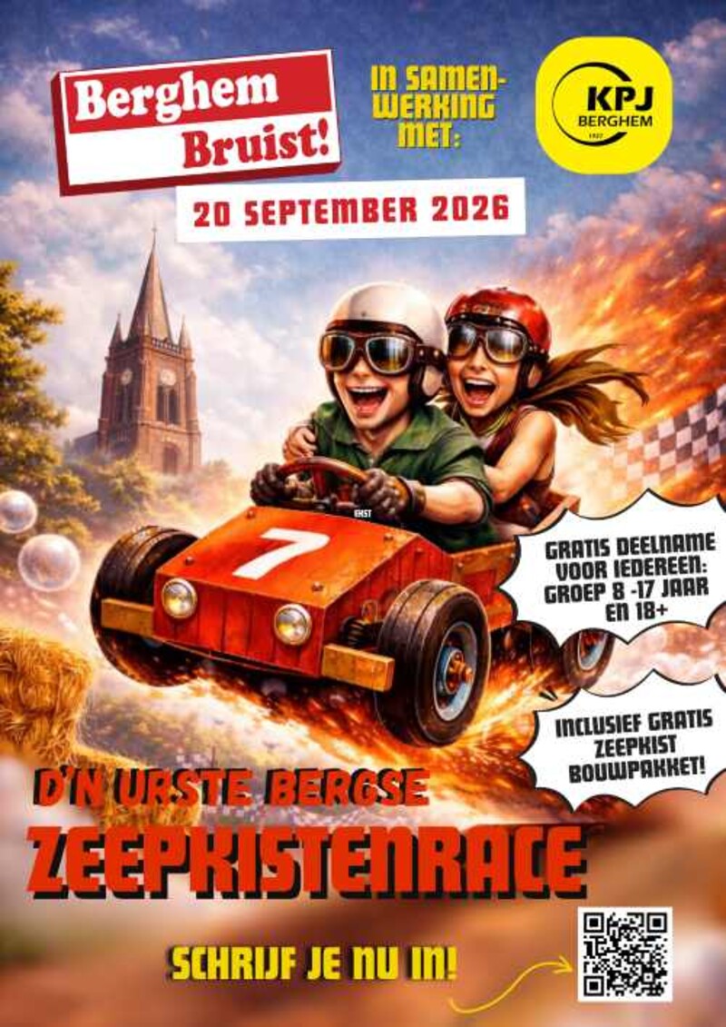 De inschrijving voor de Bergse Zeepkistenrace is geopend! Tijdens de komende editie van Berghem Bruist op 20 september vormt de pastorietuin het decor van een spectaculaire race vol snelheid, creativiteit en teamspirit. De zeepkistenrace wordt georganiseerd in samenwerking met KPJ Berghem. Durf jij het aan om de helling af te racen en misschien wel de snelste of meest originele zeepkist van Berghem te bouwen? Schrijf je vandaag nog in op de website www.berghembruist.nl en doe mee aan dit spectaculaire onderdeel van Berghem Bruist!