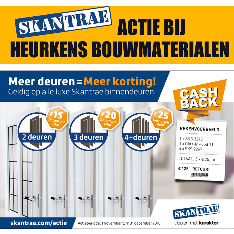 Skantrae actie bij Heurkens bouwmaterialen “Meer deuren = meer korting!”