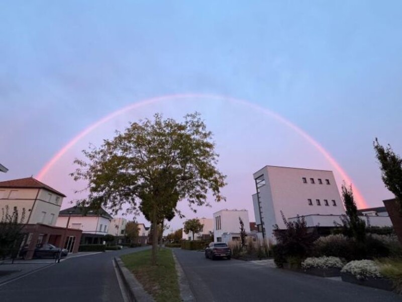 Een prachtige regenboog was er deze ochtend boven de Piekenhoef in Berghem te zien. Yvette van Bekkum legde hem in de Maishof vast en stuurde deze schitterende foto naar Mooi Berghem. Een regenboog is een gekleurde cirkelboog die aan de hemel waargenomen kan worden als de (laagstaande) zon tegen een nevel van waterdruppeltjes aanschijnt en