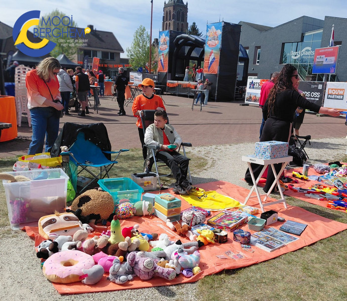 Koningsdag in Berghem ging maandagmorgen feestelijk van start. Het Oranje Comité opende de dag in aanwezigheid van de kersverse gedecoreerden Ans Verberk-van den Berg en Hans den Brok. Daarna was het de beurt aan de kinderen, die zich volop konden uitleven op het evenementenplein. Er was van alles te doen: van een gezellige kleedjesmarkt tot knutselactiviteiten, een grote zandbak en giga legoblokken. Aan vermaak