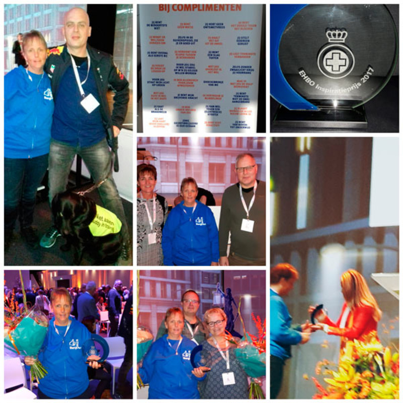 Astrid Kerkhof uit Berghem poseerde afgelopen zaterdag in NIeuwegein met een prachtige trofee. Zij mocht als voorzitter van EHBO BERGOSS de inspiratieprijs van het Oranje Kruis in ontvangst nemen. Met de uitreiking van de EHBO inspiratieprijs wil Het Oranje Kruis aandacht geven aan een persoon of organisatie die het afgelopen jaar inspirerend is geweest op het gebied van EHBO. Ehbo BergOss is in 2015 opgericht in Berghem door enkele jongeren afkomstig uit Berghem en Oss. Door de extra groei in 2015 zijn zij in januari 2016 uitgeweken naar een gratis leslocatie in Oss. Zij hebben op dit moment zo'n 36 leden waarvan bijna de helft uit Berghem afkomstig is. Een 7 tal leden is als leiding bij scouting berghem actief, en afgelopen jaar hebben zij in Berghem medewerking verleend in de vorm van een ehbo post op het Hoessenbosch festival en tijdens het tentfeest van de kpj afgelopen september.