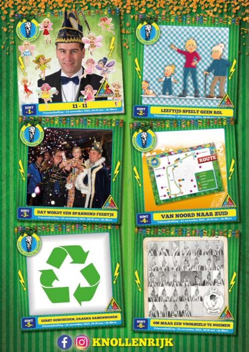 Wie o wie zal er volgende week heersen in het Knollenrijk? Zijn jullie al lekker aan het puzzelen met de informatie die jullie nu hebben ontvangen? Noem de kanshebbers, die als hoogheden over het Knollenrijk mogen heersen. Zaterdag 22 november zullen wij, de nieuwe Prins, Adjudant en Knolleginneke onthuld worden in de Merx! Het is ons dan ook een waar genoegen jullie uit te mogen nodigen voor wat voor ons hét feest van het jaar is. Met een, speciaal op ons verzoek, sterk ingekort officieel gedeelte en natuurlijk de aanwezigheid van een hele goede feest DJ Davey Beijers zijn bijna alle ingrediënten aanwezig, maar natuurlijk zijn jullie degenen die het feest compleet maken.
