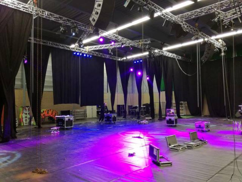 Vrijdagavond zijn de mensen van de organisatie van de pronkzittingen 2017 weer gestart met de opbouw van het knollentheater. In Sportcentrum Berghem wordt er weer een supermooie theater gebouwd. Dit jaar met een nieuwe podium en met de presentatie van Tryfon Roelofs en Dave van Schaijk. Het wordt in het weekend van 3,4 en 5 februari weer heel spectaculair met