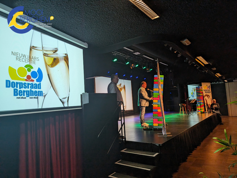 Het was gisterenavond een zeer geslaagde nieuwjaarsreceptie van dorpsraad Berghem. De belangstellenden voor deze receptie werden verwelkomd door leden van dansclub De BeaYes. Dat was al een goede binnenkomer! Het programma ging in een vlot tempo door de avond heen en begon met een promofilmpje van dorpsraad Berghem gevolgd door het openingswoord van voorzitter van dorpsraad Harmen Snoeijs, Bergs lied door Bergse zangeres Babs Hilliger begeleidt door girarist Roy van der Lee, toast op het nieuwe jaar, cadeau-overhandiging voor