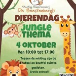 De kinderboerderij De Beestenbergh viert dierendag op zaterdag 4 oktober. Dit jaar in het thema 'Jungle'. Er zullen leuke spellen klaarstaan zoals Jungle bingo, een apenkooi parcours, giraffe ringwerpen, schminken en nog veel meer. Er kan natuurlijk ook een leuke knutsel gemaakt worden. Al enige jaren werkt De Beestenbergh samen met de bibliotheek en zij